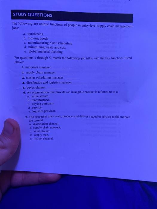 Solved Study Questions The Following Are Unique Functions Of Chegg Com